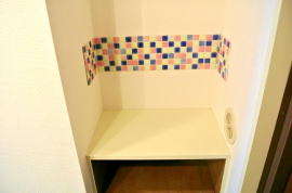 | 約10分程度でタイルをワンポイントにした壁面が完成!!アレンジも自由自在に可能です♪ | |